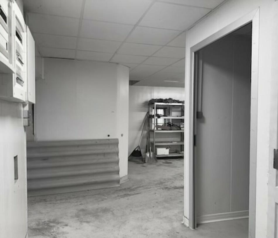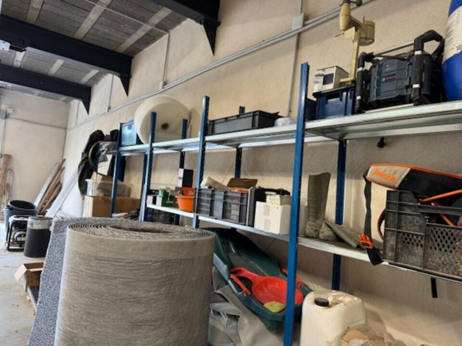en sus de l'atelier doté de 2 portes sectionnelles, le local comprend une zone de stockage, un sanitaire, un vestiaire, une stocke de stockage exterieure abritée par un auvent. le local est équipée de fenetres pour lumière du jour