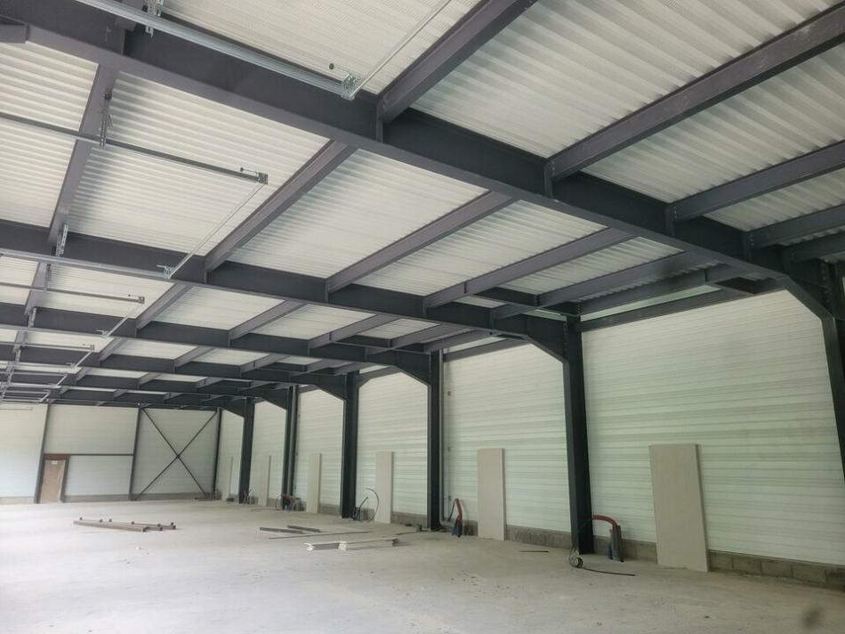 Vends local d'activité d'une surface totale de 945 M². 01090 Montmerle s/s. Charpente métallique, sol béton résistance 1500 kilos / m², bardage double peau isolé 120 mm. L'atelier mesure 490 M² et est équipé de 7 portails sectionnels 4Mx4M et en mezzanine les bureaux mesurent 455 M² et sont équipés de fenêtre PVC 4Mx4M. l'entrepôt est livré brut fluides en attente. il est divisible par multiple de 70M² . 2 places de parking /boxes soit 14 places de parking.